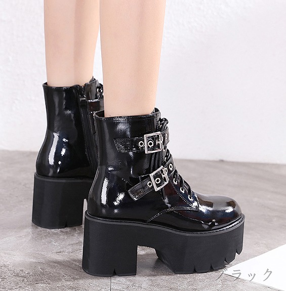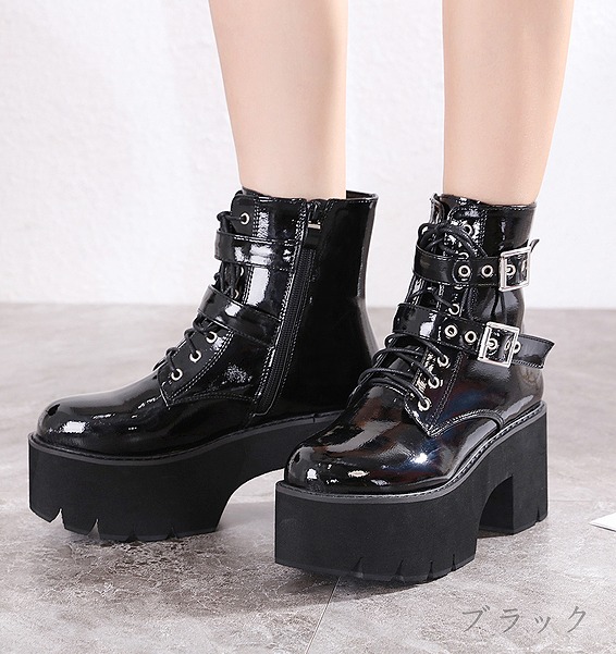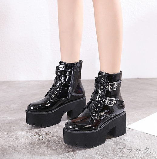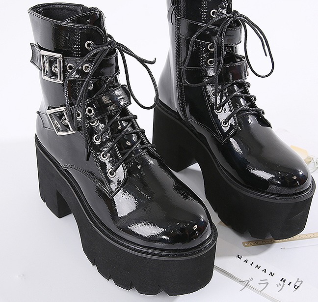 ブーツ 厚底 太いヒール 切り替え 無