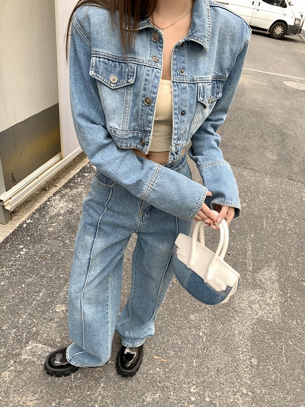 デニムパンツ ビジュー付き