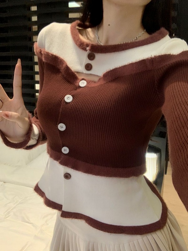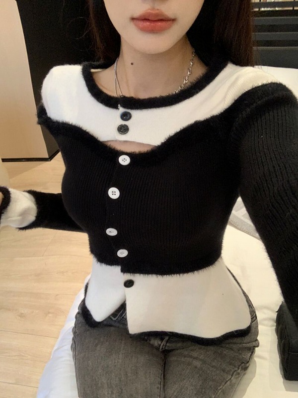 春物 春コーデ 夏物 夏コーデ 春夏新作 秋物 秋コーデ 冬物 冬コーデ 秋冬新作 新品 韓国ファッション レディース 流行 大人気 オシャレ 大人 きれいめ 綺麗目 上品 お洒落 スタイルUP 20代 30代 40代 50代 かっこいい 格好いい かわいい 可愛い lady trend fashion 全2色 ニット セーター 長袖 切り替え バイカラー 配色 スリム 着痩せ カットソー ファッション sweet系 トップス カットソー