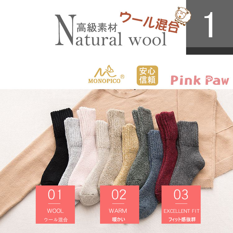 色: レディース ウール 混色 22-27cm レディース ウール 単色 22-27cm メンズ ウール 混色 23-28cm