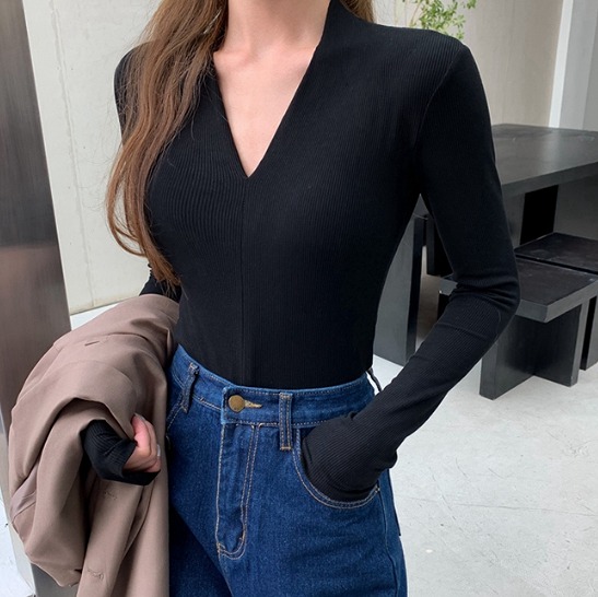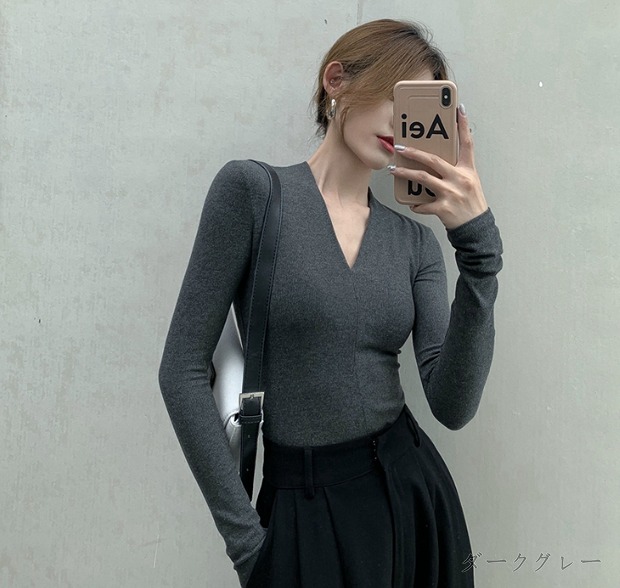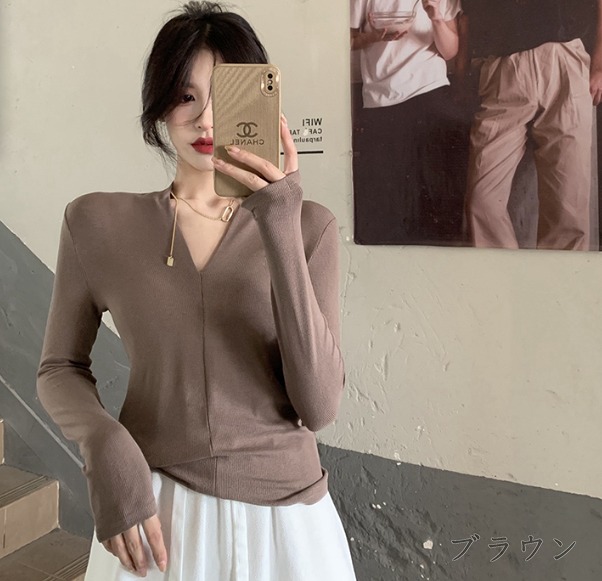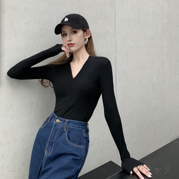 全5色 Tシャツ カットソー 長袖 V