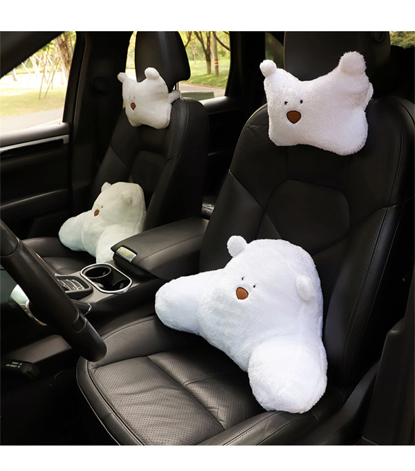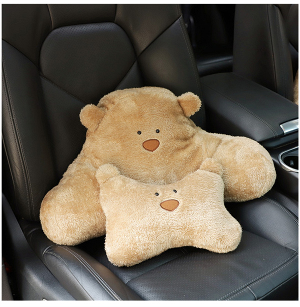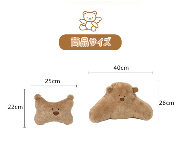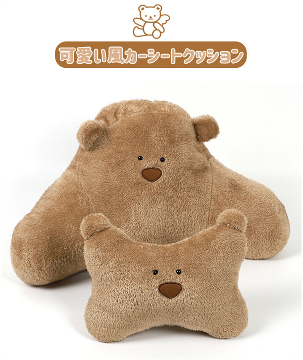 車用クッション 2点セット 熊クッション カークッション ネックパット 腰クッション 可愛い車用品 バイク用品 車用品 アクセサリー シートクッション
