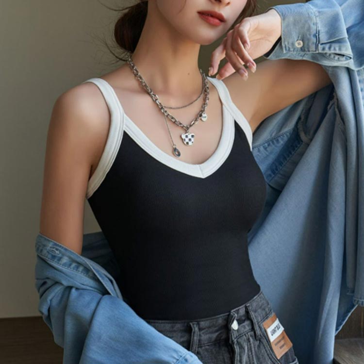 タンクトップレディースTシャツノースリーブUネックロゴプリント