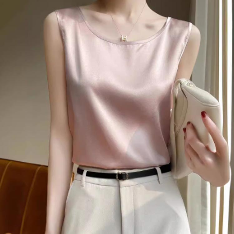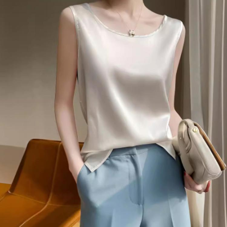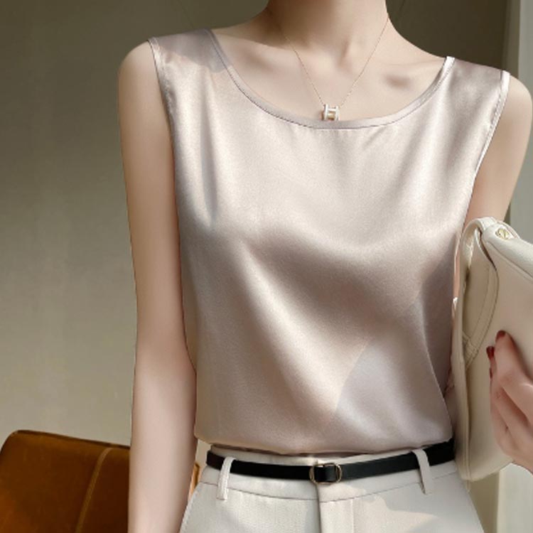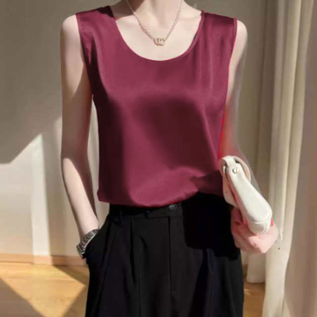 タンクトップ シルク調 サテン Uネッ