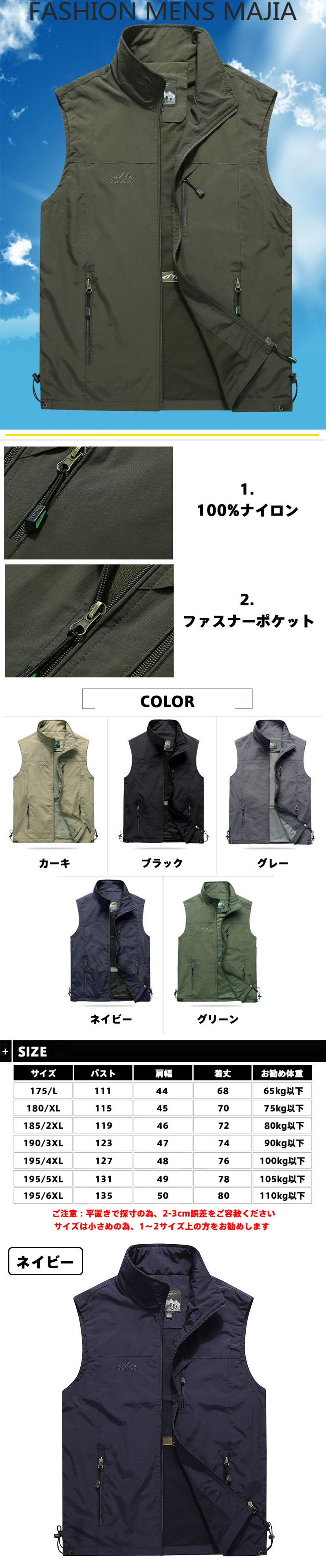 カラー: ブラック ネイビー カーキ グレー グリーン