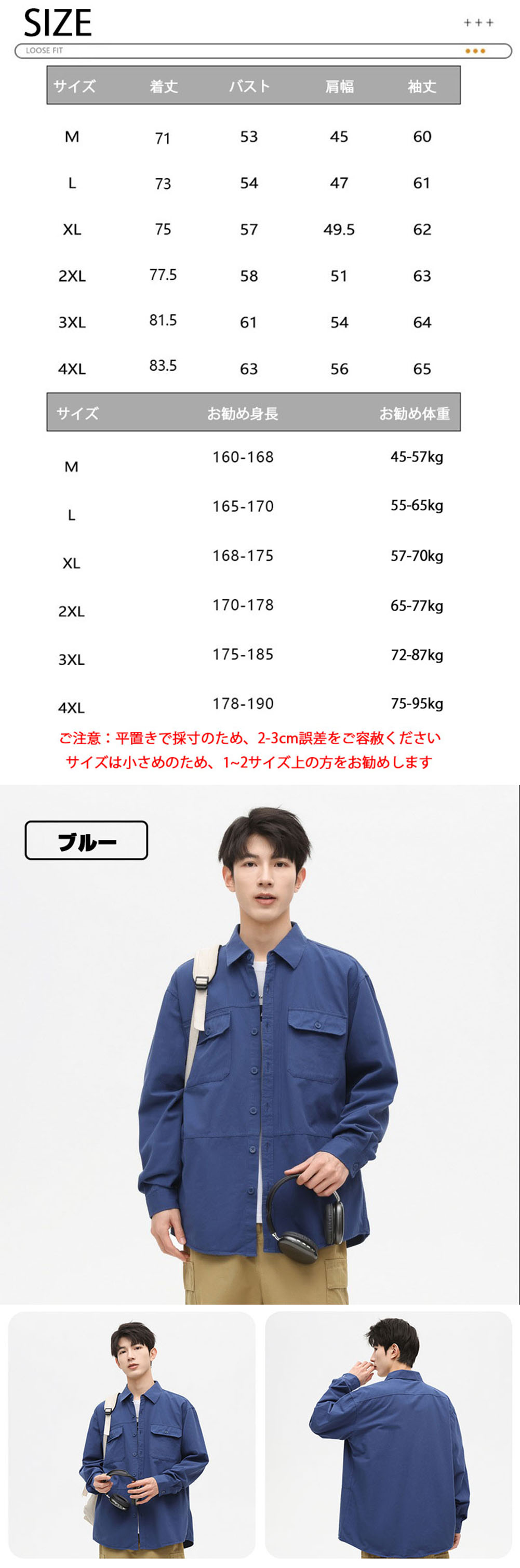 サイズ: M(S相当) L(M相当) XL(L相当) 2XL(L/LL相当) 3XL(2L/3L相当) 4XL(3L/4L相当)