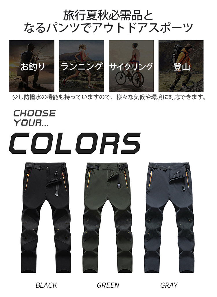 トレッキングパンツ メンズ 春夏 ランニングパンツ アウトドアズボン 高機能 速乾 通気性 アウトドアパンツ 秋 ロング丈 耐磨 カジュアル パンツ ソフトシェル ストレッチパンツ
