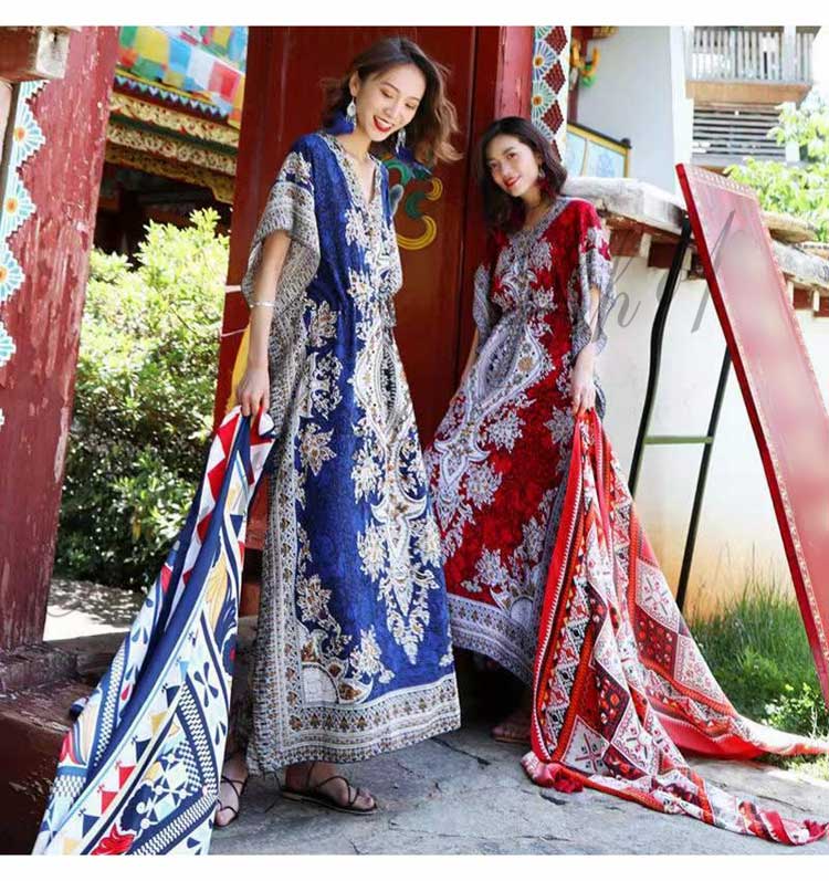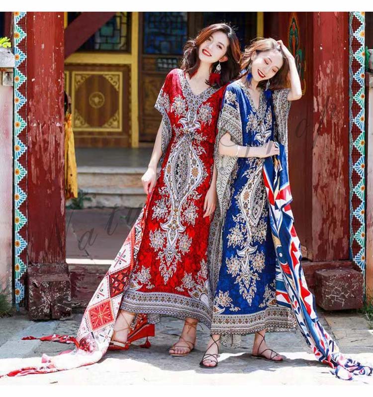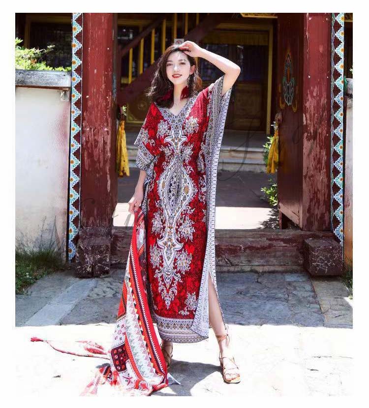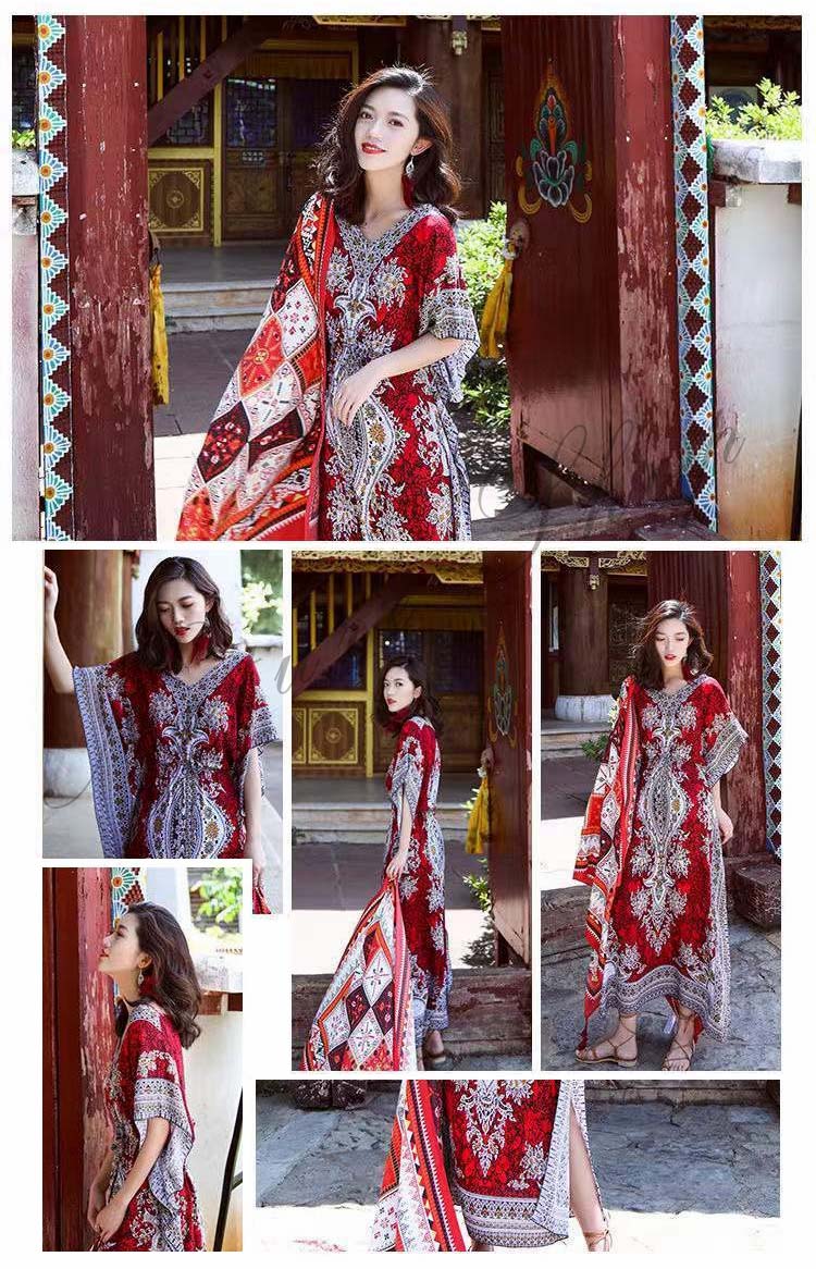 マキシワンピース ガラベーヤ風 女性用 トップス シャツ レディース ワンピース アジアン 半袖 ファッション 海 トラベル 出張 旅行 大人気 エスニック衣装