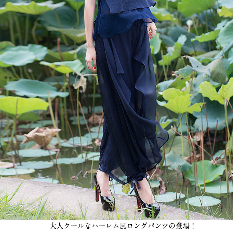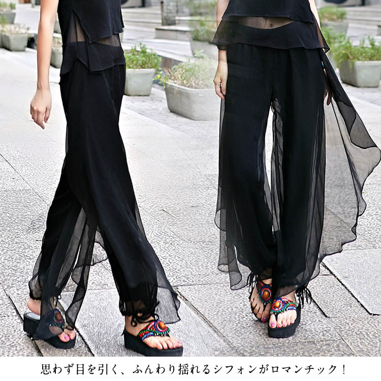 シフォンロングパンツ レディース ワイ
