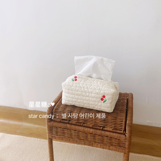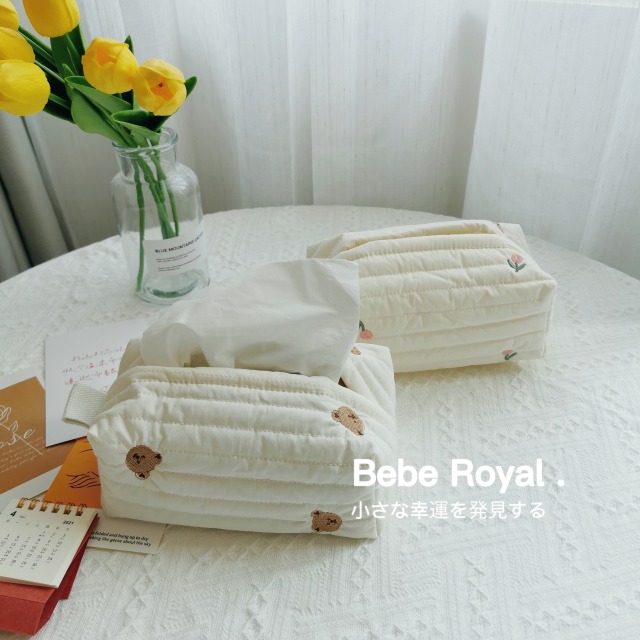 コットンティッシュケース4色箱ケースボックスティッシュ綿白ホワイト詩集さくらんぼチェリーくまベアチューリップ花柄フラワーオリーブおしゃれ韓国雑貨インテリア北欧ホルダーかわいいキッチン収納ポーチ
