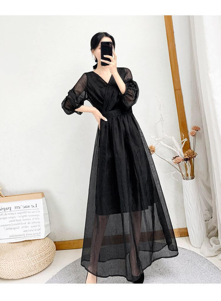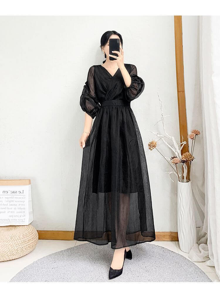 シフォンブラウス シアーブラウス ボリューム袖