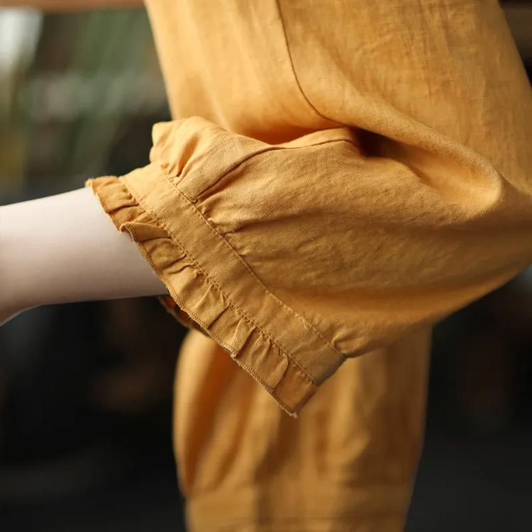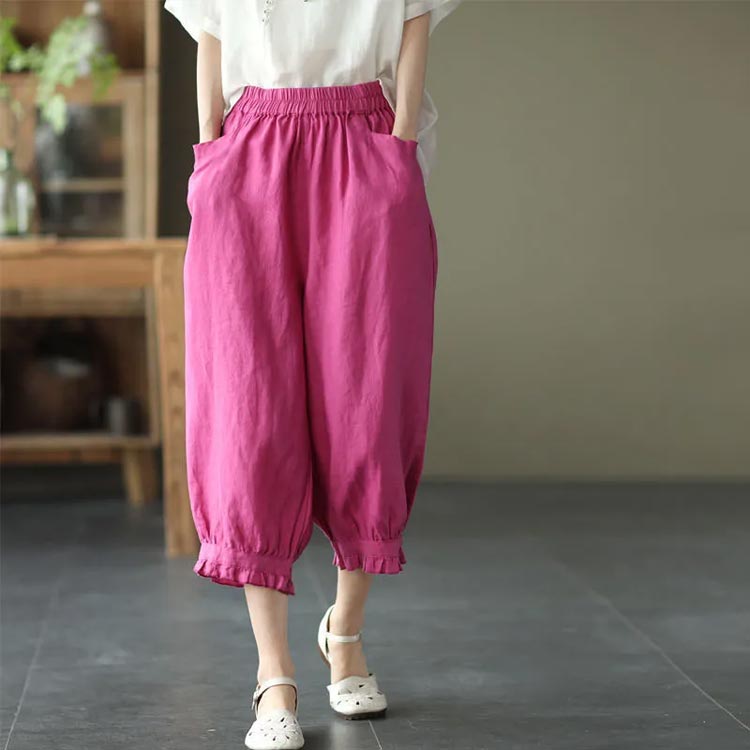 クロップドパンツ レディース サルエルパンツ 七分丈 ワイドパンツ カジュアルパンツ 7分丈パンツ 薄ウエストゴム 裾フリル 薄手 夏用 春夏 シンプル 無地 体型カバー