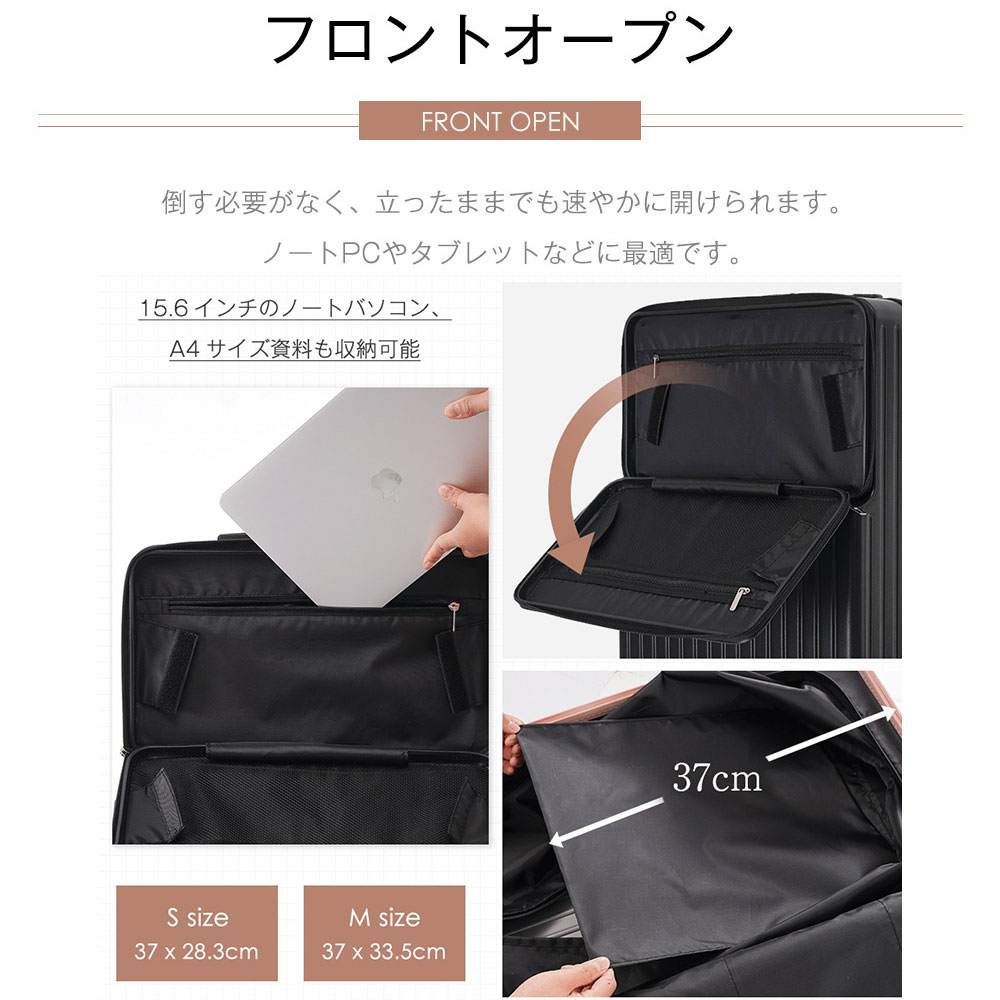 商品情報【商品名】 スーツケース 機内持ち込み フロントオープン S/Mサイズ USBポート付き ドリンクホルダー ストッパー付き 前開き キャリーケース キャリーバッグ 大容量 おしゃれ かわいい 超軽量 1~3日 4~7日 小型 中型 TSAロック 前ポケット付 国内 海外 旅行 ビジネス suitcase【サイズ】 【S 1~3日宿泊 機内持込 】外寸:約56.2*36*21.2cm 内寸:約49.5*35.3*21.2cm 重量:約3.3kg 容量:約37L