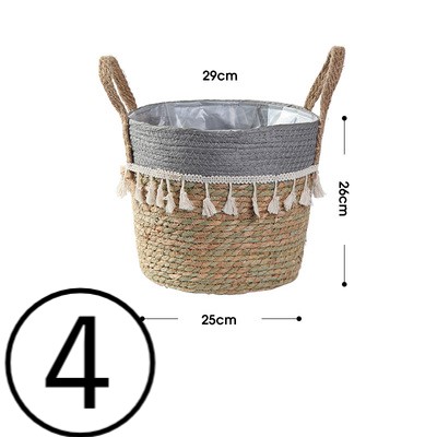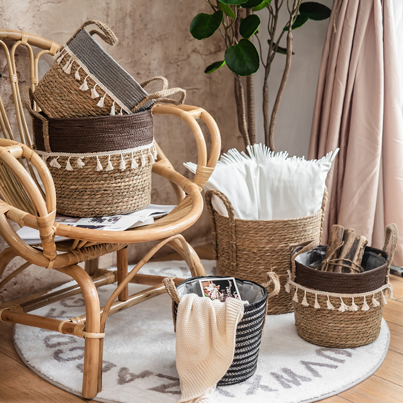 マルチ編み込みかご4色タッセルブラウンおしゃれかわいい韓国雑貨インテリア北欧収納花瓶植物バスケット入れ物大きい持ち手ランドリー丸型アジアン白ホワイト緑グリーンボックス洗濯おもちゃかごラウンド深い