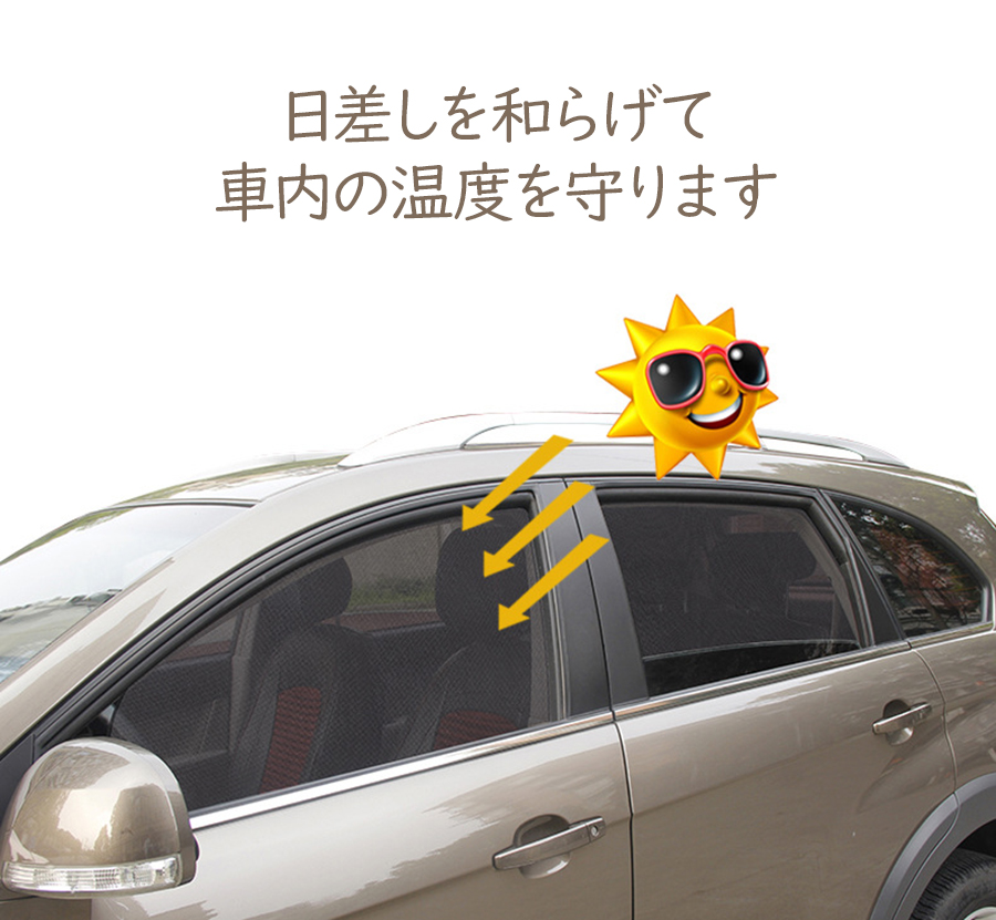 商品説明 ■汎用タイプのサイドガラス用サンシェード。