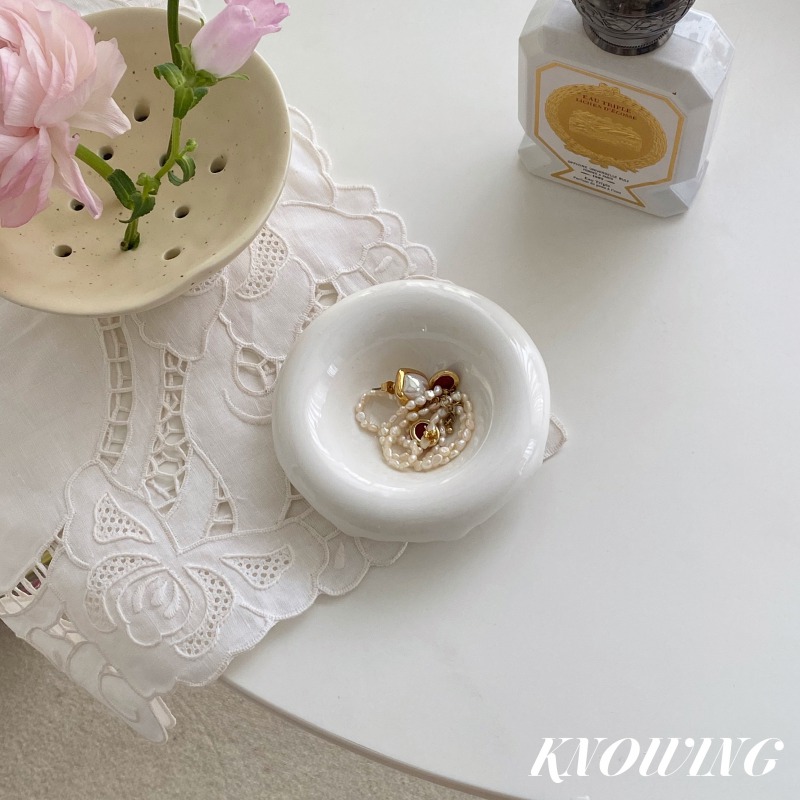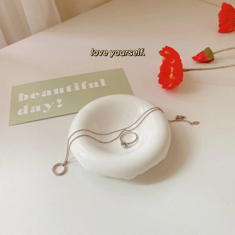 プレート陶器セラミック白ホワイト韓国雑貨北欧インテリアディスプレイアンティークかわいいおしゃれ収納小物入れアクセサリー小さい小さめ整理ケース卓上トレイ丸円置物ピアス指輪ネックレス鍵ミニシンプル