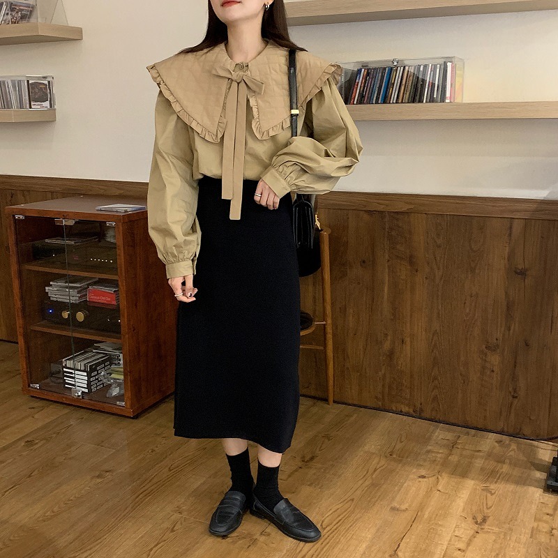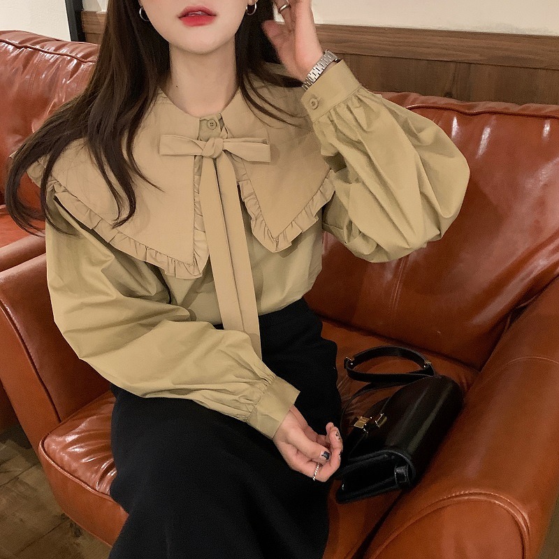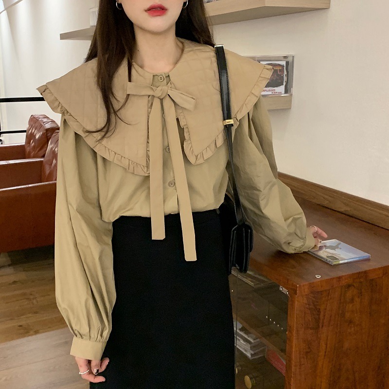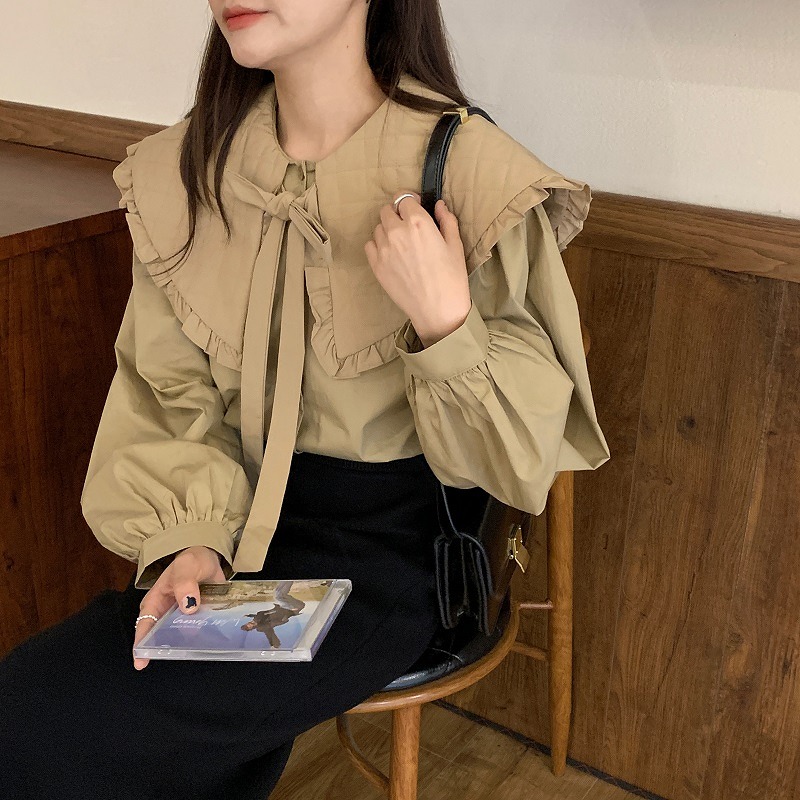 シアースリーブ ドッキングシャツ ボウタイシャツブラウス