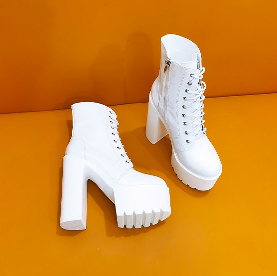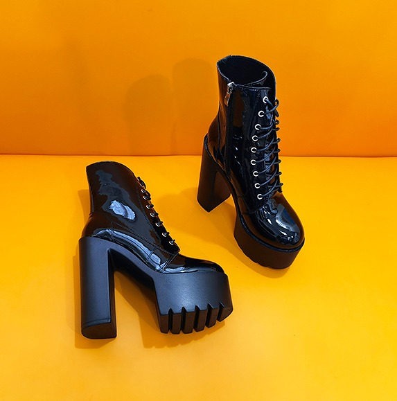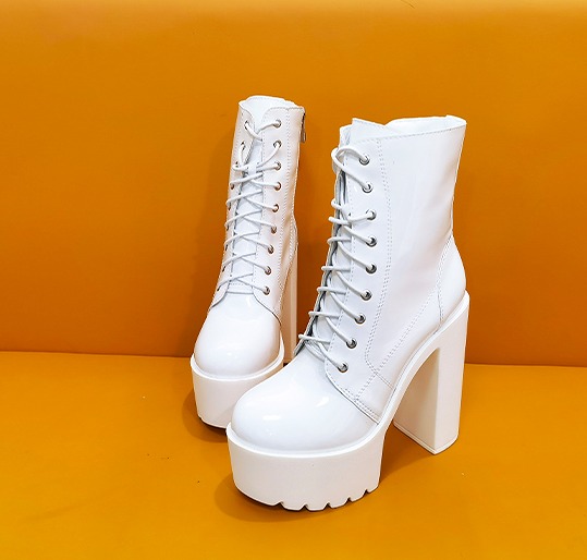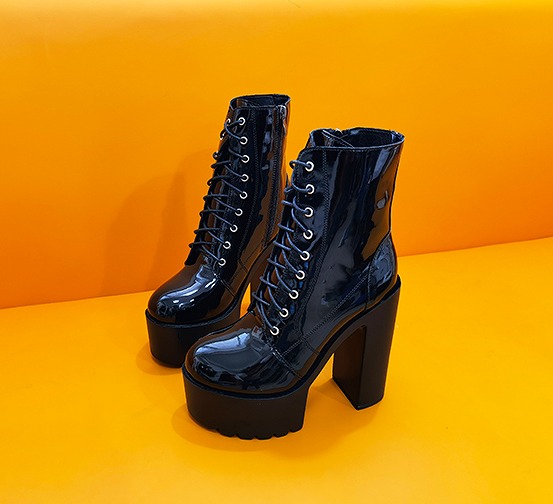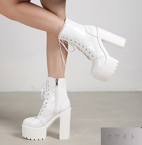 全2色 ブーツ 太いヒール 厚底 切り