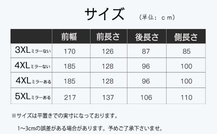 Key1714526599121: 3XL(バックミラーない) 4XL(バックミラーない) 4XL(バックミラーある) 5XL(バックミラーある)