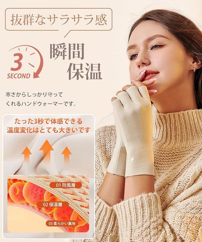 2枚セット3秒 瞬間保温 指なし手袋
