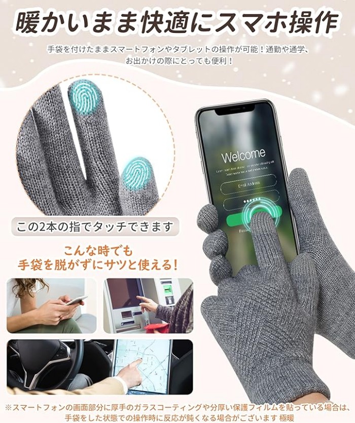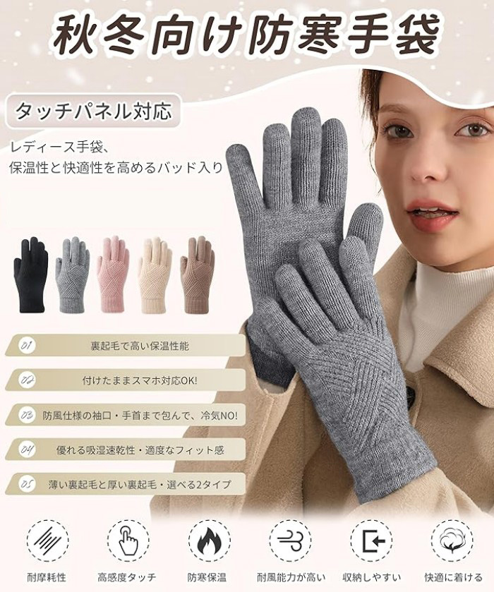 ニット手袋 レディース 防寒手袋裏起毛 保温スマホ対応 抗菌防臭秋冬 タッチパネル対応 防風 防寒 厚手 自転車 通勤 通学