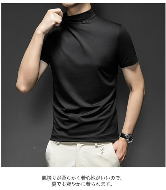ハイネック シャツ半袖 Tシャツ トッ