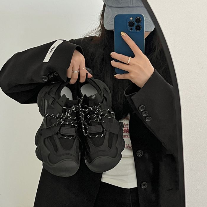 女性の円形のヘッド 厚底スニーカー カ