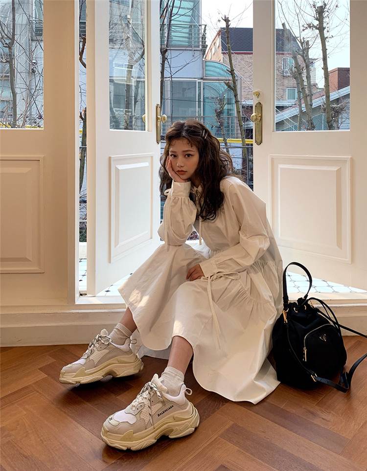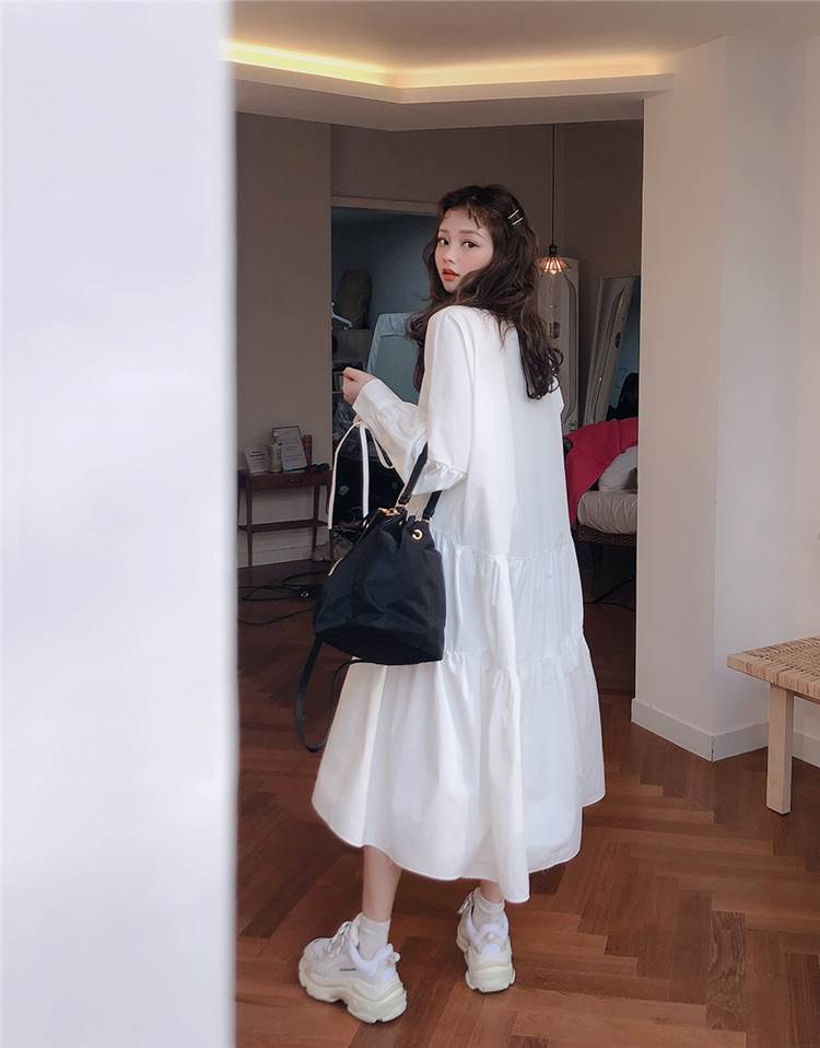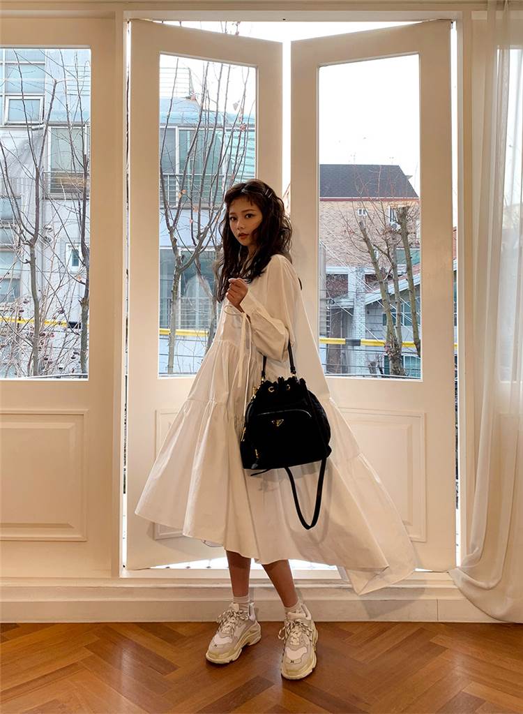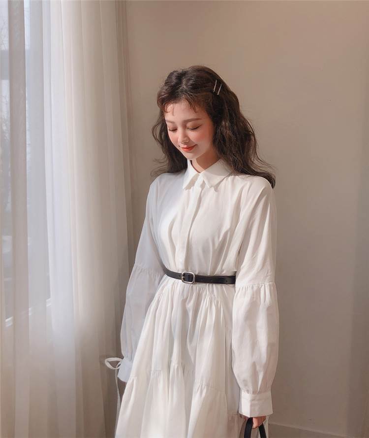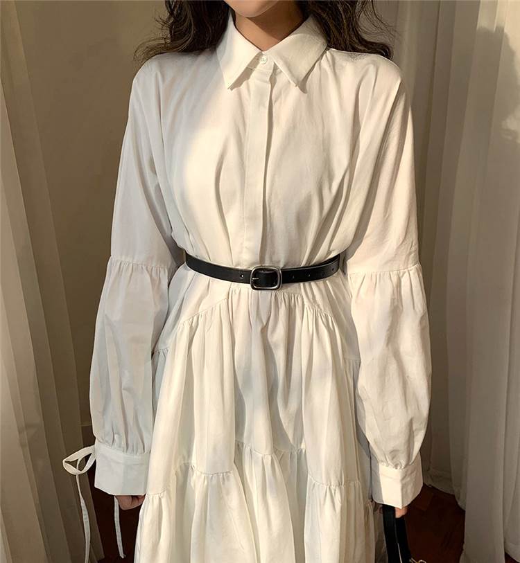 ワンピース ロング丈 袖あり 長袖 襟付き スタンドカラー フレア Aライン ウエストマーク かわいい 大人可愛い きれいめ シンプル カジュアル 大人 上品 おしゃれ お洒落 大人女子 こなれ感 ラフ ラブリー キュート ガーリー 主役級 存在感 無地 春 秋 20代 30代 レディース 女性用 デート 女子会 休日 旅行 コーデ スタイル 楽ちん 体系カバー インスタ映え サイズ S M L XL 色展開 白 ホワイト