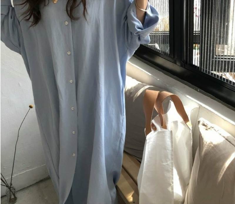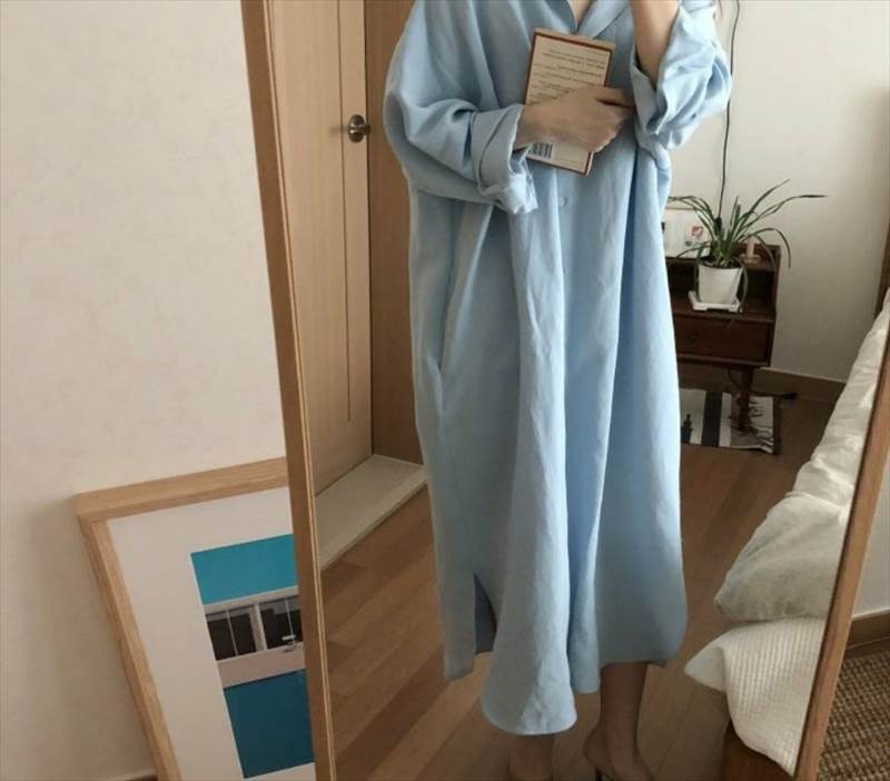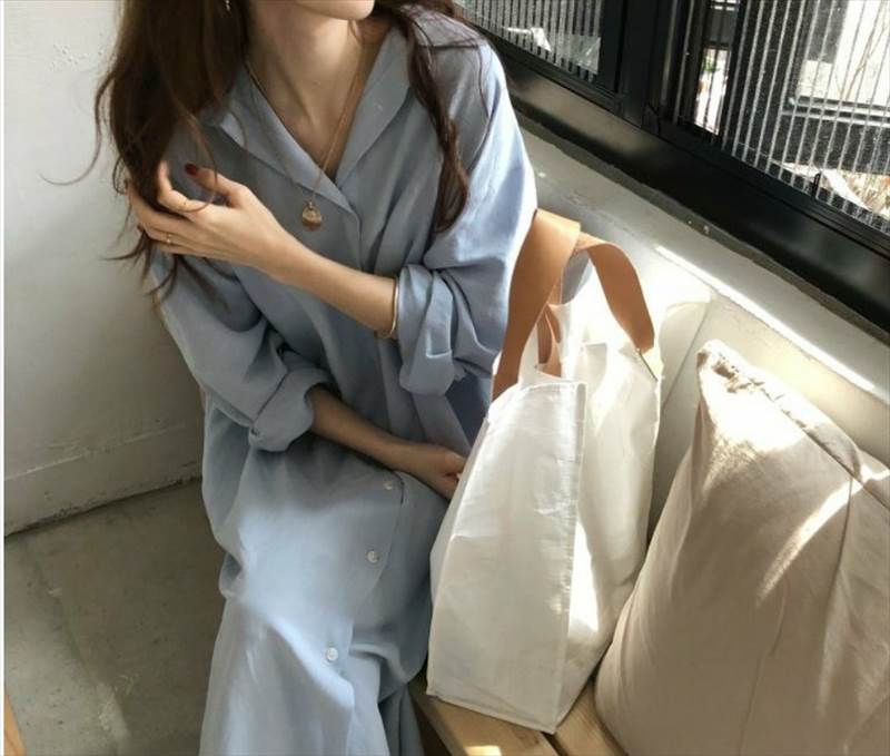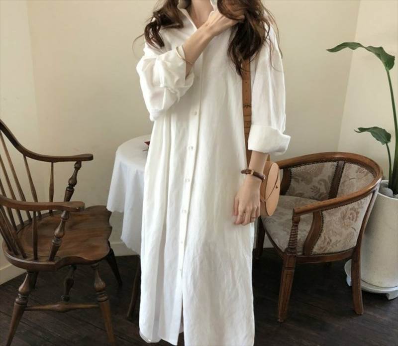 ワンピース ブラウス フレアスカート ロング丈 袖あり 長袖 襟付き スタンドカラー ワイド 前開き かわいい 大人可愛い きれいめ シンプル カジュアル 大人 上品 おしゃれ お洒落 大人女子 こなれ感 ラフ ルーズ 個性的 主役級 存在感 無地 春 秋 20代 30代 レディース 女性用 デート お出かけ 女子会 休日 旅行 コーデ スタイル 楽ちん 体系カバー インスタ映え サイズ S M L XL 色展開 ホワイト ライトブルー