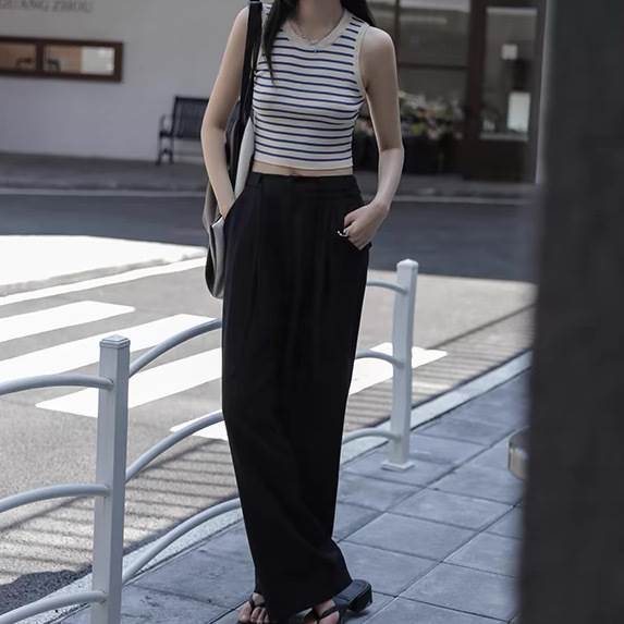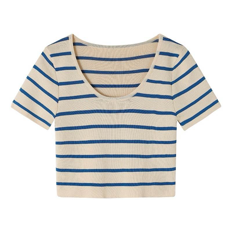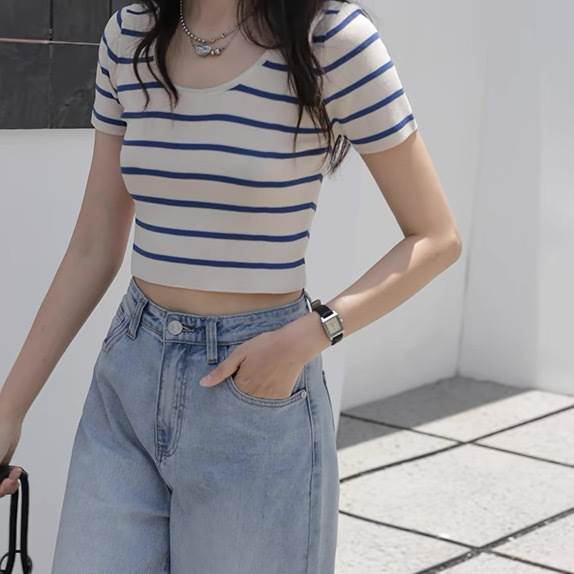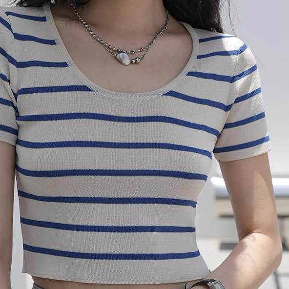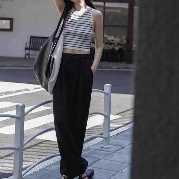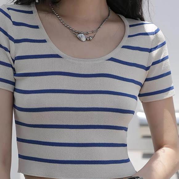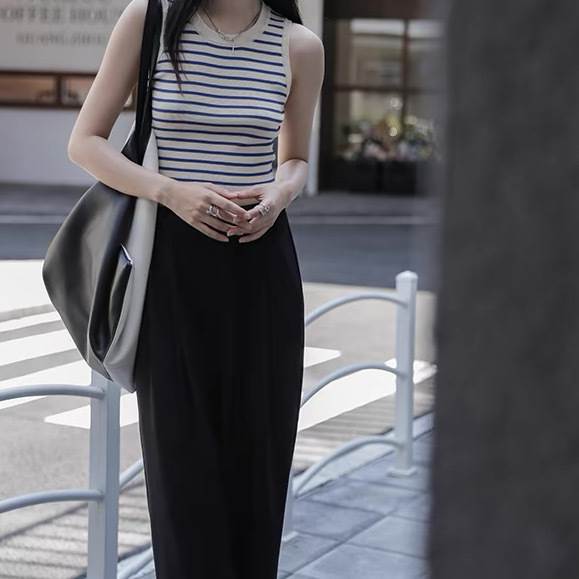 レディース トップス カットソー ニット プルオーバー Tシャツ ショート クロップド丈 袖なし ノースリーブ ラウンドネック タイト スリム 細身 ストレート ストリート スリムフィット 伸縮性 大人可愛い きれいめ シンプル カジュアル 上品 おしゃれ かっこいい こなれ感 クール ボーダー ストライプ 春 夏 学生 学校 通学 デート お出かけ 海 プール 公園 女子会 休日 ショッピング 韓国 オルチャン コーデ 普段使い 着回し トレンド 流行 S M L 黒 ブラック ブルー アプリコット