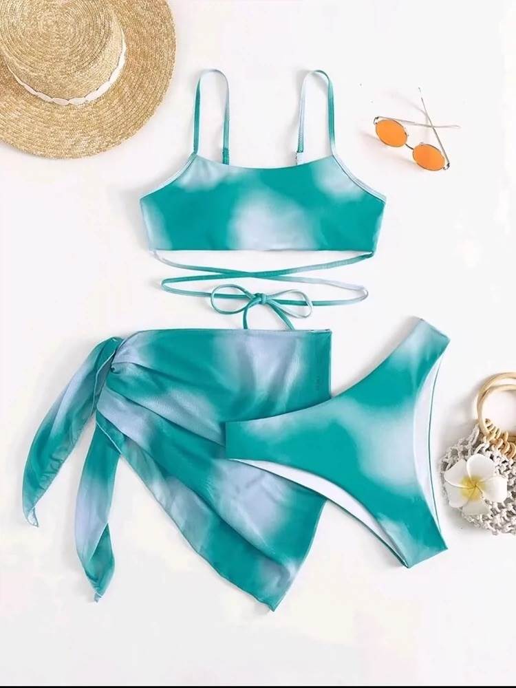レディース 水着 ビキニ セクシービキニ 絞り染め クロス 胸パッド 胸元 谷間 谷間魅せ セット スリーピース 3点セット かわいい 大人可愛い きれいめ シンプル ナチュラル 華やか 大人