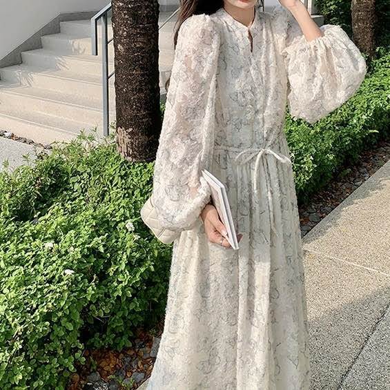 レディース ワンピース 長袖 ランタンスリーブ ロング丈 バタフライ 蝶 プリント Aライン ウエストリボン ルーズ きれいめ 上品 おしゃれ お洒落 シンプル カジュアル 大人可愛い 大人女子 かっこいい スタイリッシュ キュート ラブリー ガーリー フェミニン レトロ 主役級 存在感 こなれ感 抜け感 春 秋 10代 20代 お出かけ デート 女子会 お泊まり 旅行 休日 ショッピング 普段使い デイリー 韓国 オルチャン ファッション コーデ トレンド スタイルアップ S M L XL ホワイト