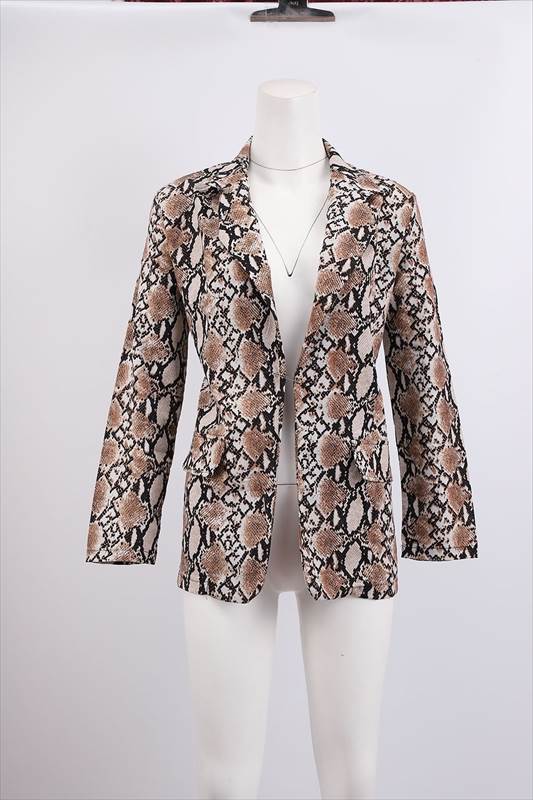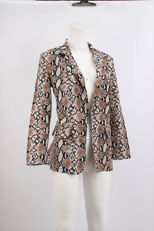パイソン柄ジャケット ワンピース ジャケット 袖あり 長袖 Vネック 襟付き 前開き 大人可愛い シンプル カジュアル 大人 おしゃれ お洒落 かっこいい エキゾチック 大人可愛い 大人女子 個性的 柄 アニマル柄 春 秋 10代 20代 30代 レディース デート お出かけ 女子会 休日 普段使い 重ね着 サイズ M L XL 色展開 茶色 ブラウン