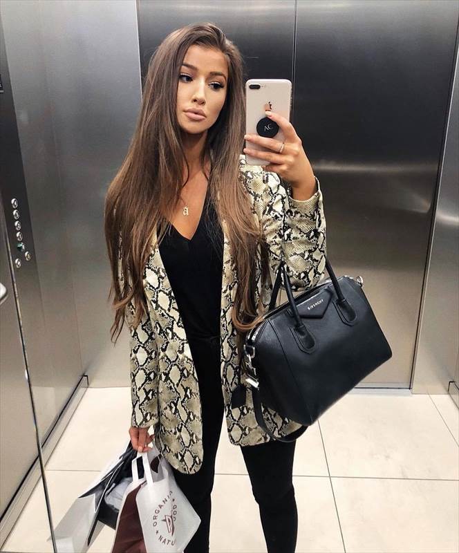 インパクトがあるので中に合わせるトップスとボトムスはシンプルなものですっきりとまとめるのが正解。あえてワンピースやスカートなどの甘いスタイルにMIXさせても素敵です。
