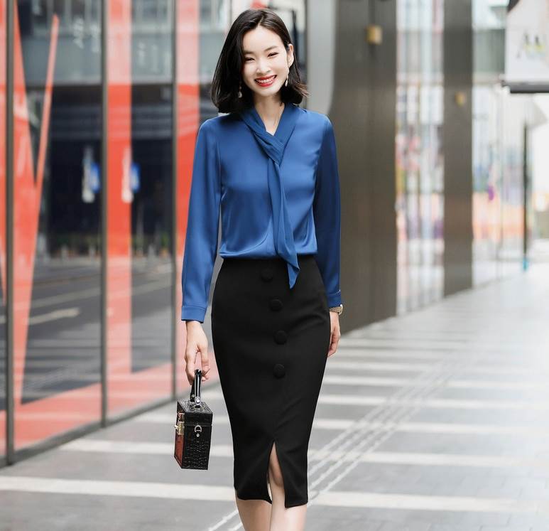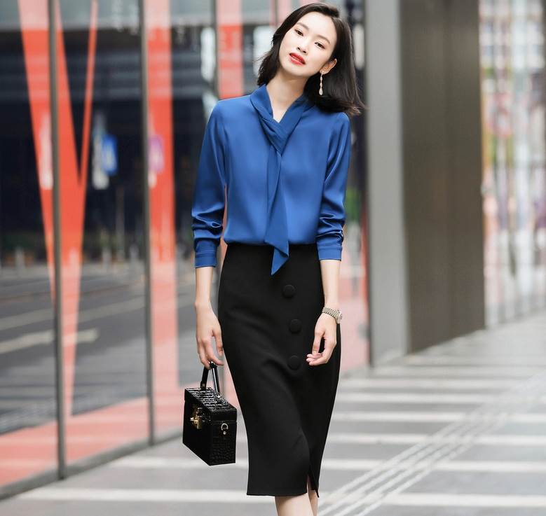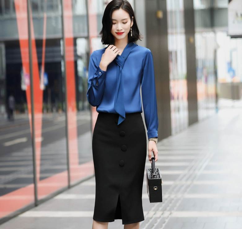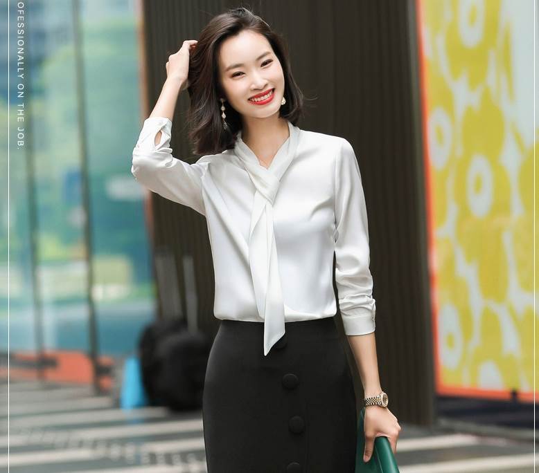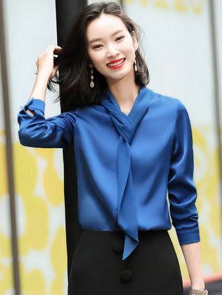 素材が軽く柔らかく着心地良い、すっきりしたデザインのボウタイブラウス♪