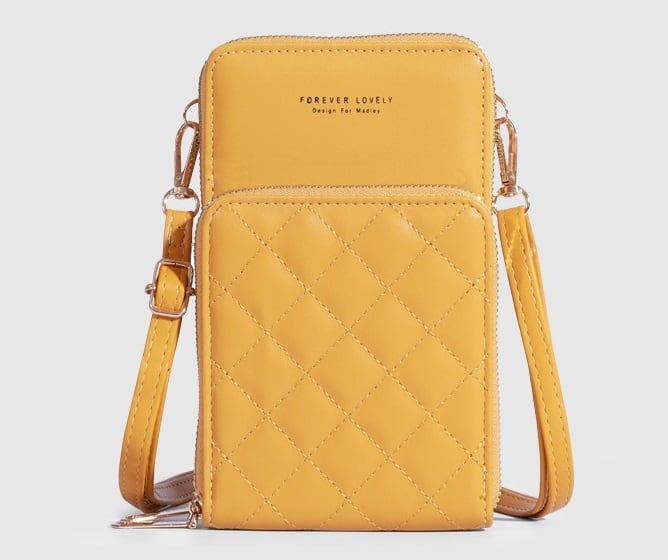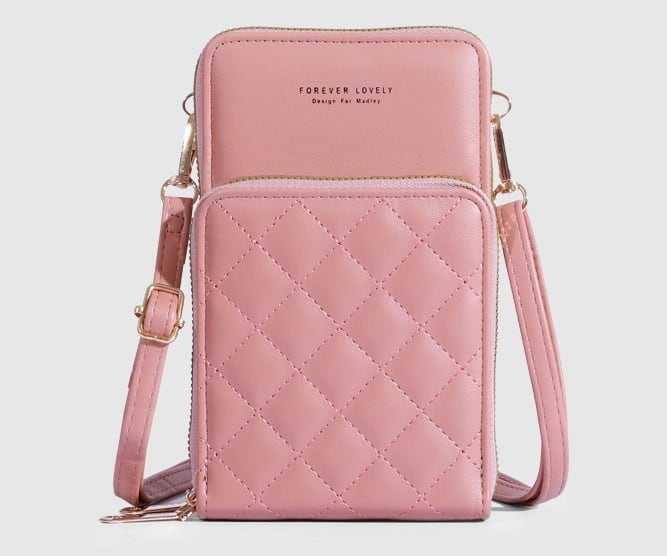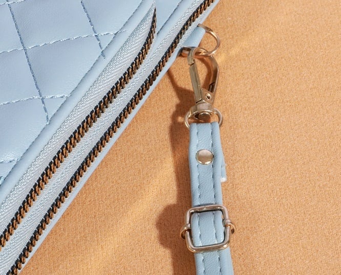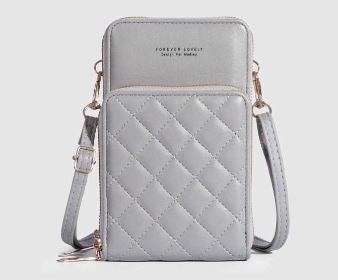 日常使いから特別なシーンまで、あなたのスタイルに合わせて自由にコーディネートできるキルティングレザースマホショルダーバッグ。