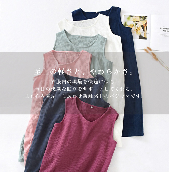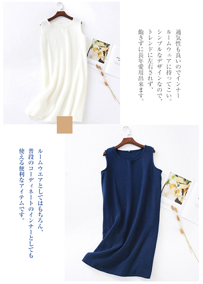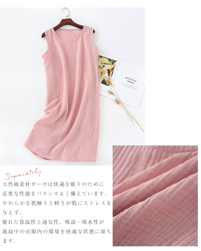 綿100% 部屋着 ネグリジェ ガーゼパジャマ レディース ワンピース ルームウェア ノースリーブワンピース ルームワンピース ノースリーブ 膝丈 コットン 無地 カジュアル ナチュラル