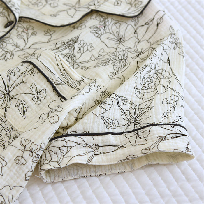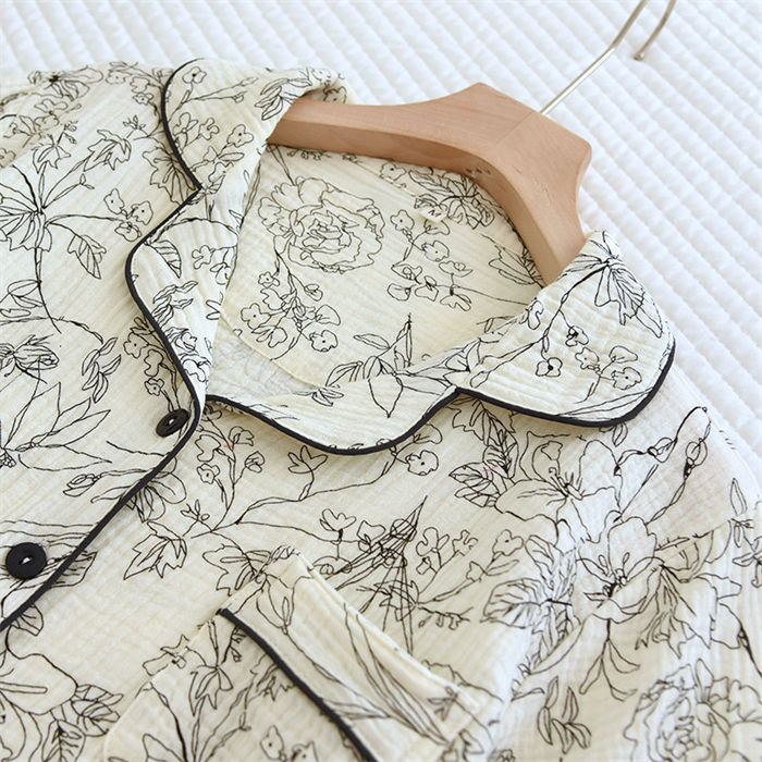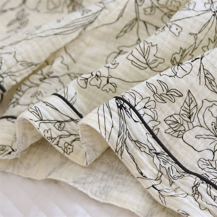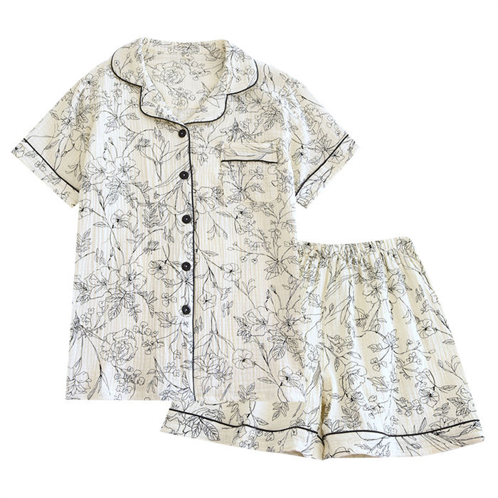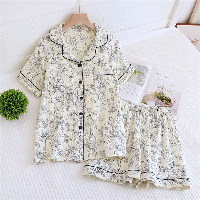 ダブルガーゼ パジャマ レディース 夏 半袖 ハーフパンツ 前開き 綿 総柄 ルームウェア 二重ガーゼ ナイトウェア セットアップ 上下セット