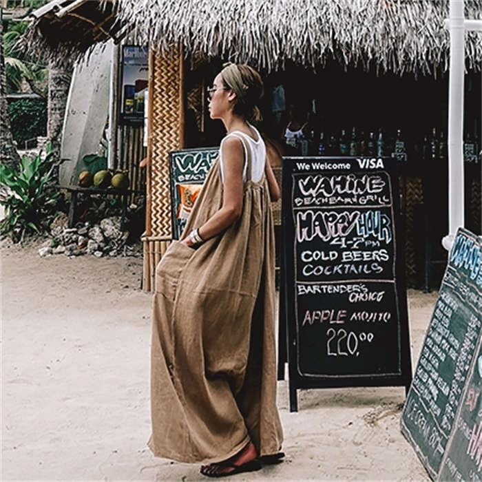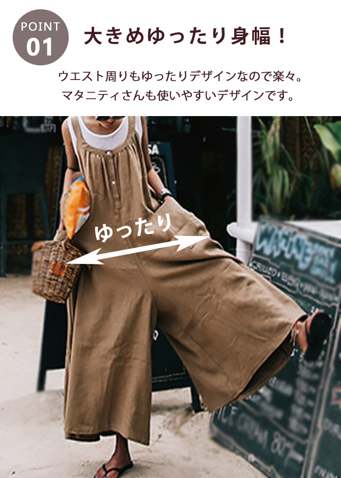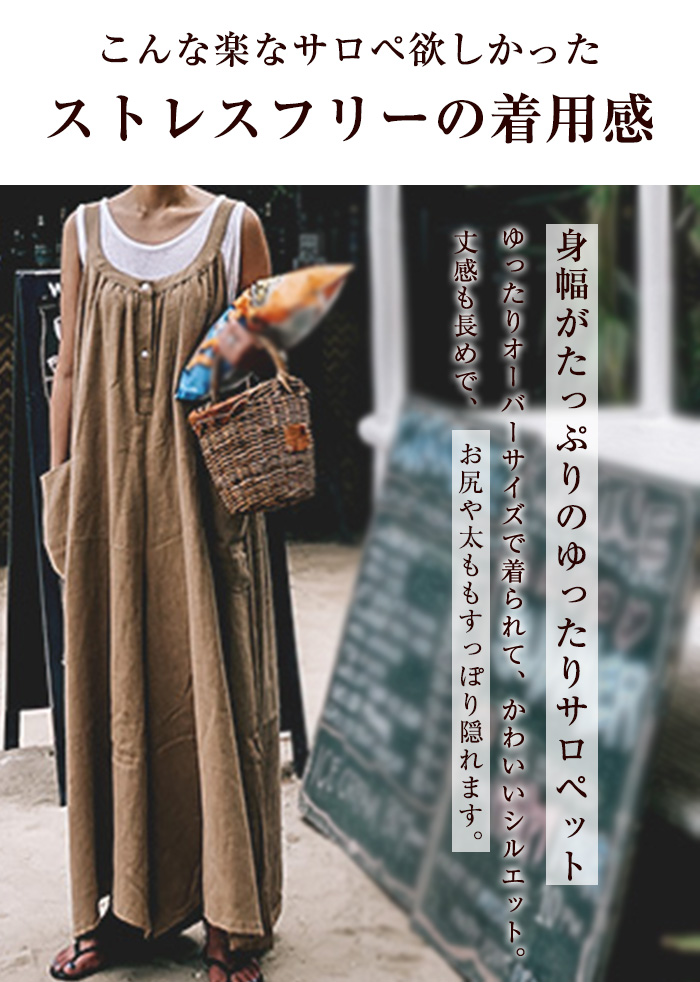 大人の抜け感~ 綿麻素材 サロペットパ