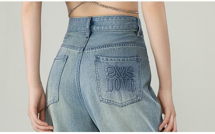 デニムパンツ ビジュー付き