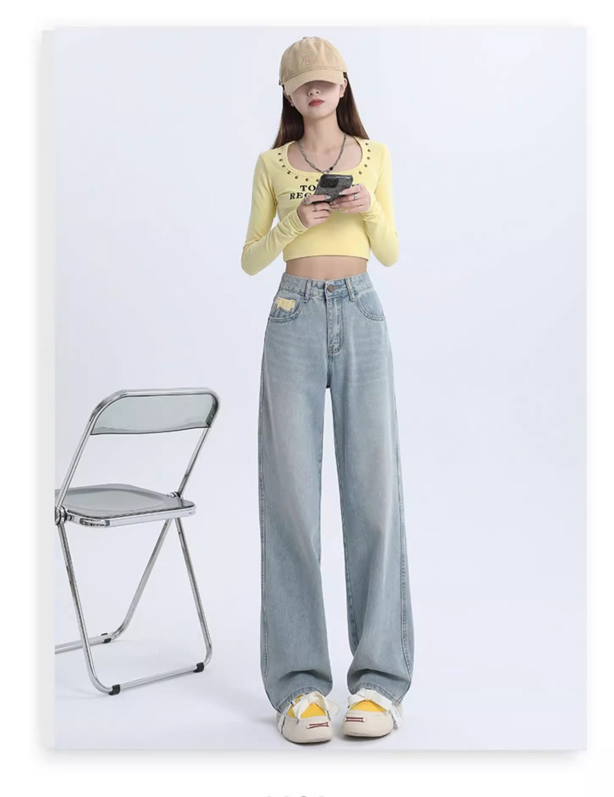 デニムパンツ ビジュー付き