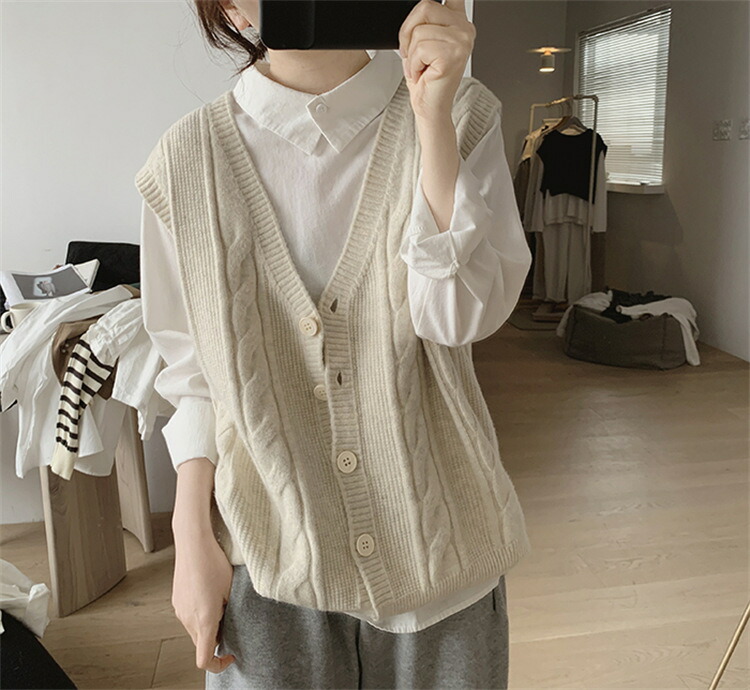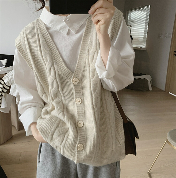 ニット ベスト レディース コーデ 春