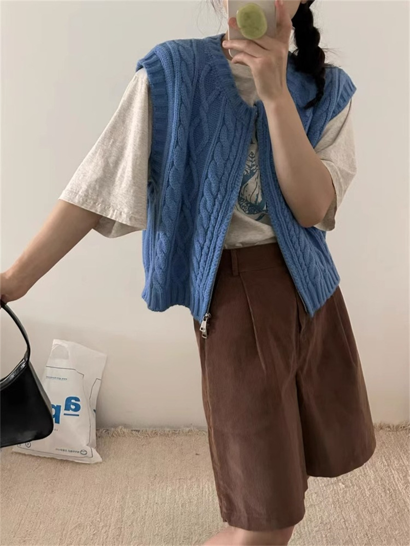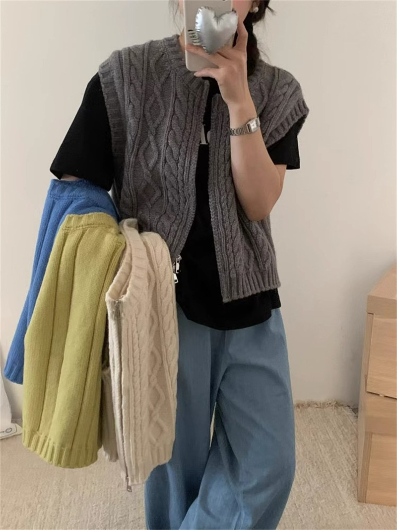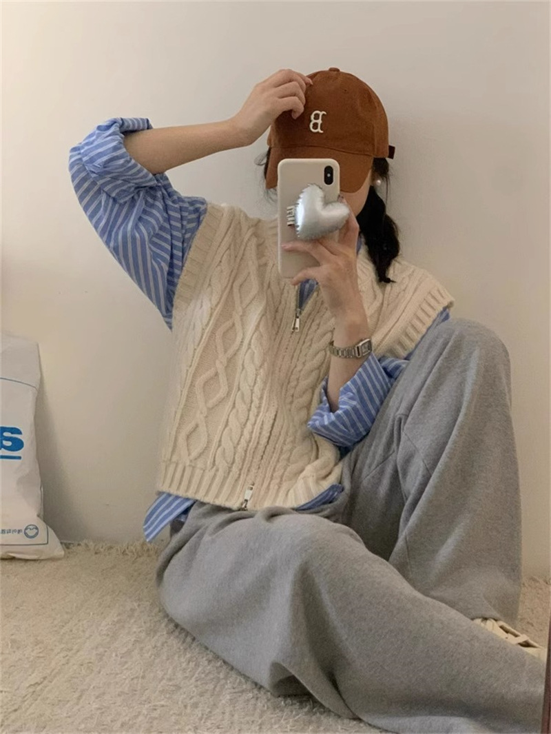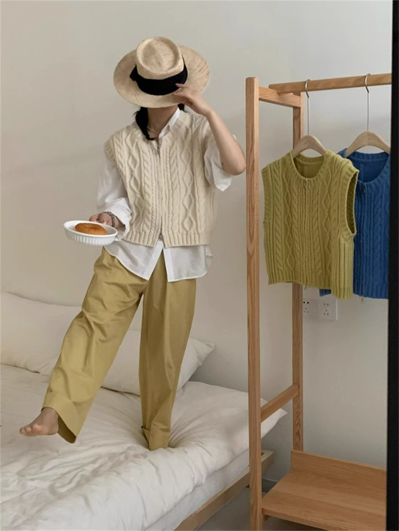 ニットベスト ベスト 秋 コーデ 前開