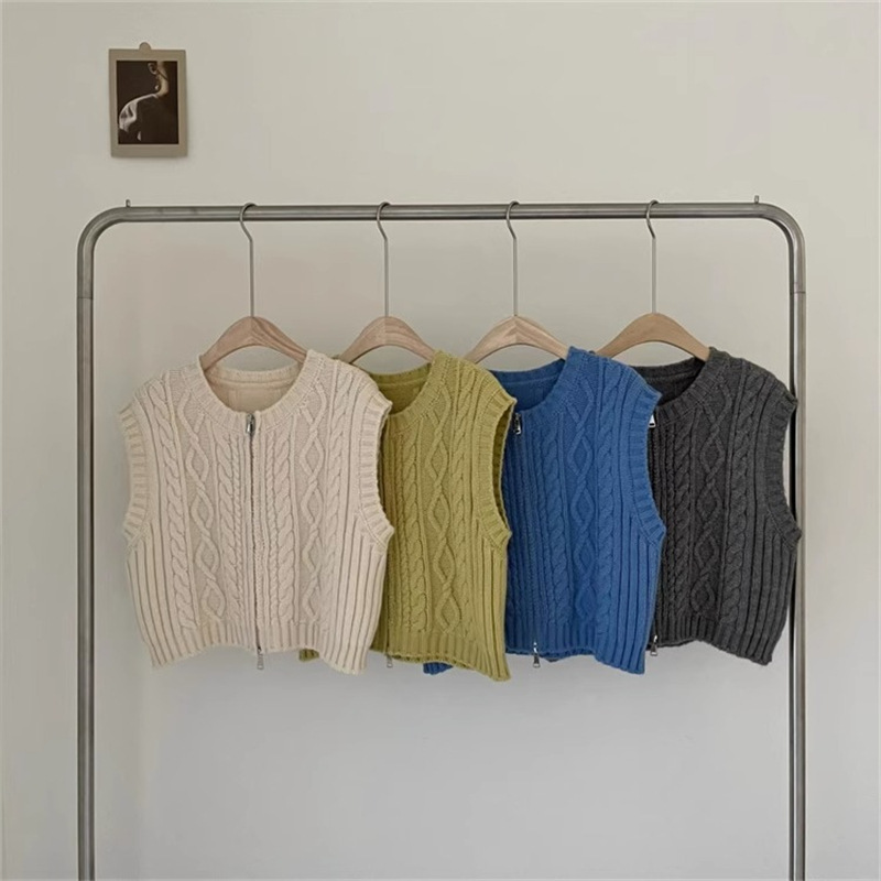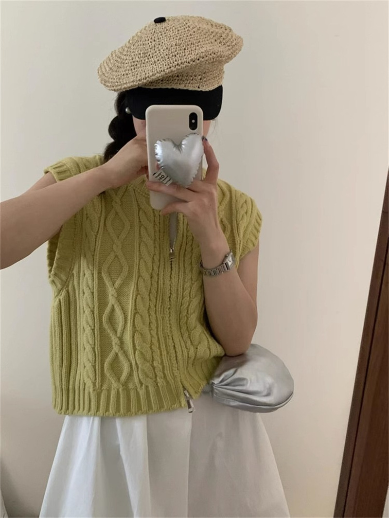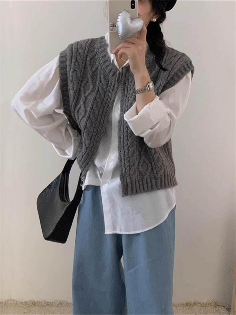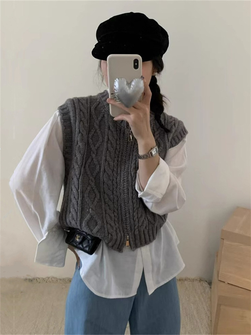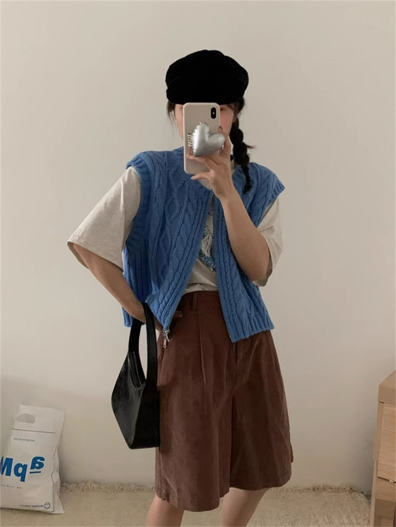 ニットベスト ベスト 秋 コーデ 前開