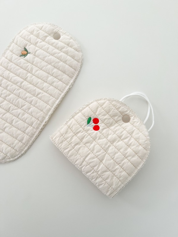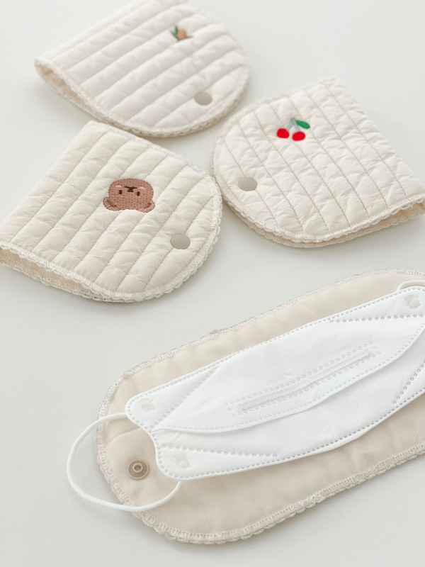 4デザインマスクケース持ち運びポーチ刺繍韓国おしゃれ可愛い白ホワイトくまベアオリーブ月星さくらんぼチェリーレディース北欧布コットン綿コンパクトミニ折り畳みマスク収納マスクポーチ薄型大人子ども