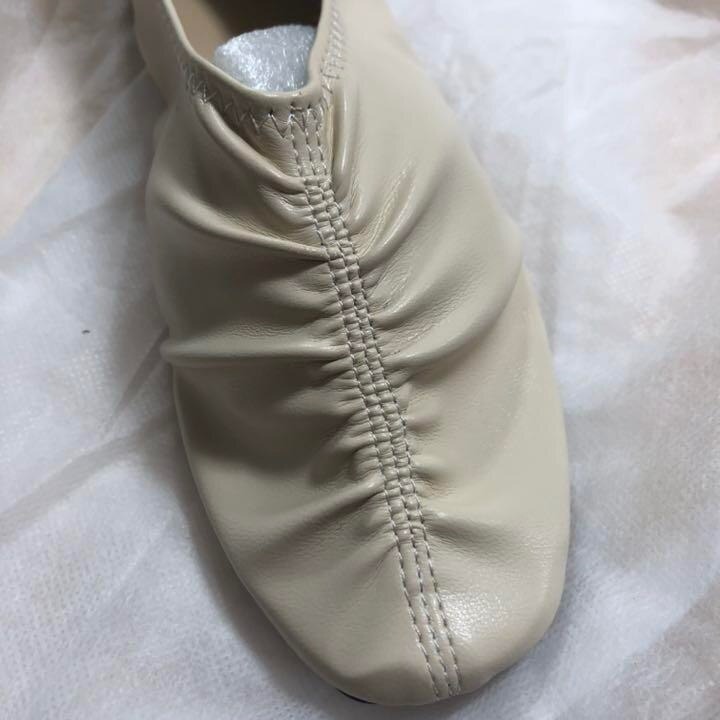 ギャザーパンプス24.5cm靴シューズふらっとぺたんこ履きやすい動きやすいカジュアルおしゃれ可愛い韓国レディース大人アイボリーベージュ無地シンプル足の甲が隠れる甲深