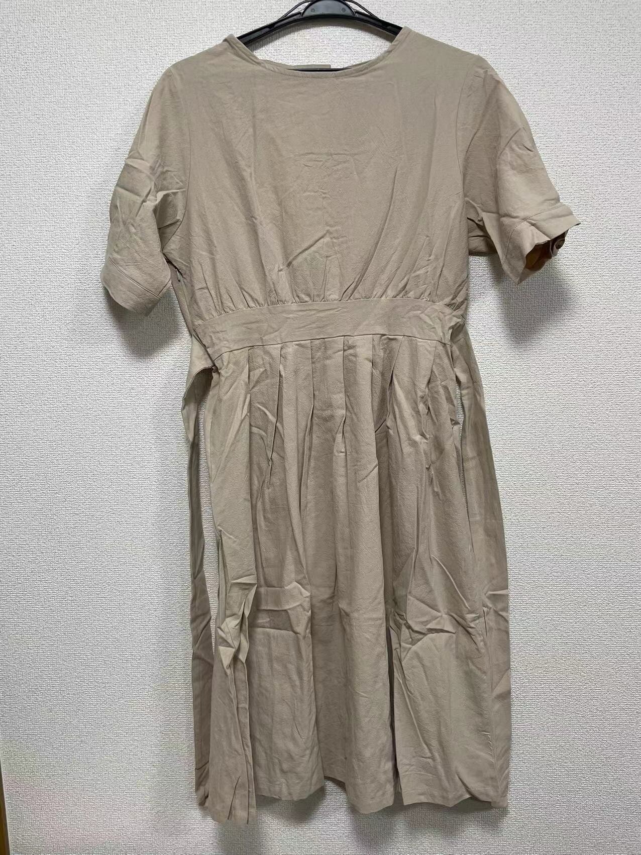 半袖カジュアルワンピースベージュブラウ