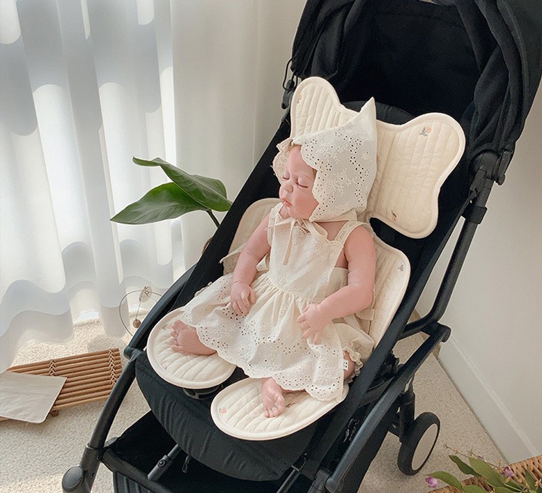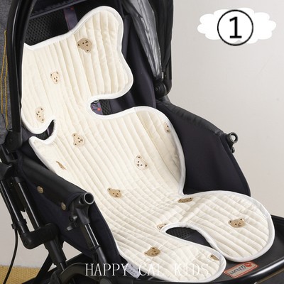 7デザインベビーカーシートクッションマット韓国おしゃれ可愛い北欧女の子男の子綿コットンキルティング刺繍くまベアうさぎチューリップ花柄フラワーオリーブさくらんぼチェリー赤ちゃんベビーメッシュオールシーズ