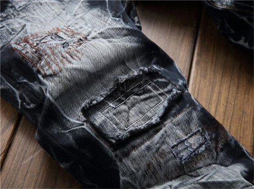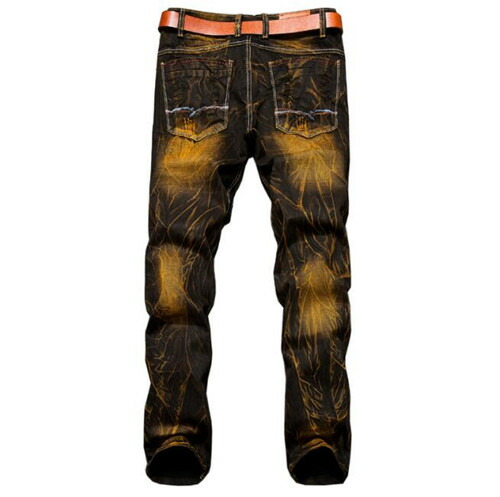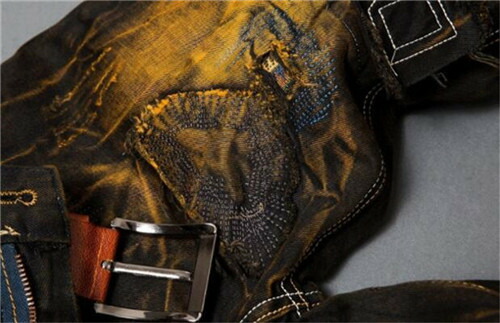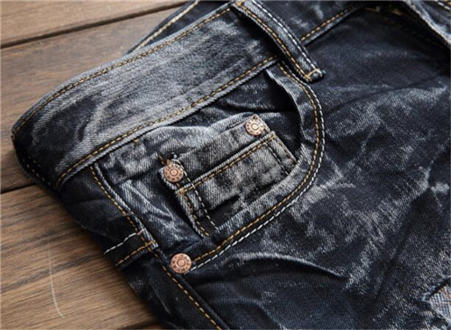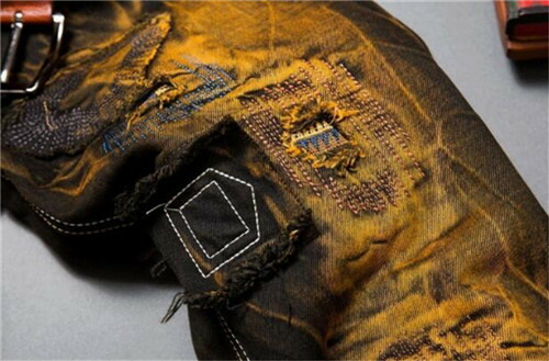 生地は厚手のデニム素材ビンテージ風のダメージジーンズです。圧倒的な存在感で着こなしは自由自在です。トップスをシックに決めてもラフに決めて良い優れものです。