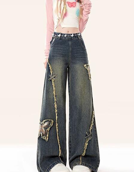 デニムパンツ ビジュー付き